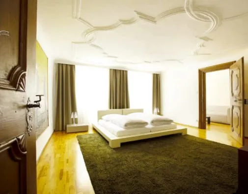 Nach den vielen Eindrücken muss man auch sein Haupt ruhen lassen und Salzburg hat hier einiges zu bieten. So das Traditionshotel Blaue Gans in der Getreidegasse, die derzeit wohl spannendste Wohnadresse in der Salzburger Altstadt. Wenige Schritte von den bekannten Highlights wie Mozarts Geburtshaus, Museum der Moderne und Festspielhaus, verbindet das arthotel Blaue Gans auf raffinierte Weise historisches Erbe mit modernem Esprit. Das 4-Sterne-Hotel kombiniert moderne Elemente mit zeitgenössischer Kunst und historischem Ambiente. Die Kunst ist das beherrschende Thema, das sich durch das mehr als 650 Jahre alte Haus mit seinen Gewölben, verwinkelten Stiegenaufgängen und dem überdachten Arkadeninnenhof zieht. Kunst aber nicht als pure Dekoration, sondern Teil der Identität. Skulpturen, großformatige Bilder und Designelemente verleihen Zimmern, Suiten und Studios (für längere Aufenthalte) extravagante Wohnqualität. Gelebte Geschichte wird in der original restaurierten Wirtsstube mit ihren Jahrhunderte alten Gewölben und Deckenmalereien lebendig. Gleich nebenan präsentiert sich die wine bar als frecher Kontrapunkt. Beliebter Promitreff ist im Sommer der Gastgarten vor der barocken Altstadtkulisse. Als stimmungsvoller Rahmen für Konzerte und Events präsentiert sich die uralte Caverne in den Untergewölben.
