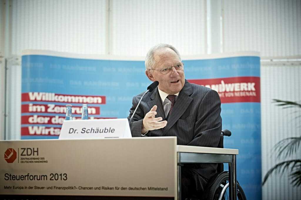 "Eine nachhaltige Finanzpolitik schafft Vertrauen, eine Grundvoraussetzung für Wachstum", sagte Wolfgang Schäuble beim ZDH-Steuerforum. Ziel sei es, die Neuverschuldung weiter zurückzufahren und 2015 einen Haushalt vorzulegen, bei dem die Einnahmen größer seien als die Ausgaben.