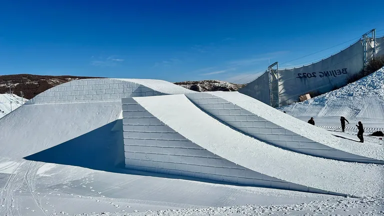Die Slopestyle- und Big Air-Anlagen für die Olympischen Winterspiele in Peking hat das Handwerksunternehmen Schneestern aus Bayern gebaut. - © Schneestern