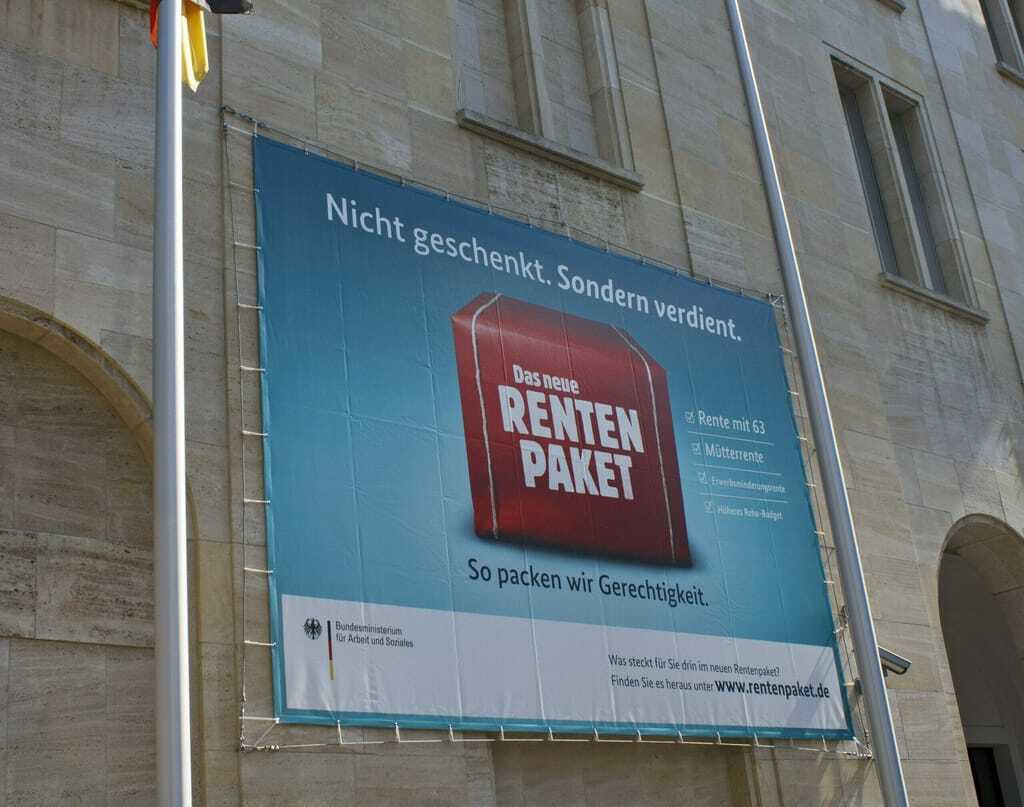 Auch das Bundesministerium für Arbeit und Soziales schaffte es wieder ins Schwarzbuch - mit der Werbekampagne für das Rentenpaket. Grund für die Kampagne auf Plakaten und im Internet war laut Ministerium die Verpflichtung, für den Bürger Klarheit zu schaffen. Insgesamt kostete das den Steuerzahler jedoch mehr als 1,14 Millionen Euro.