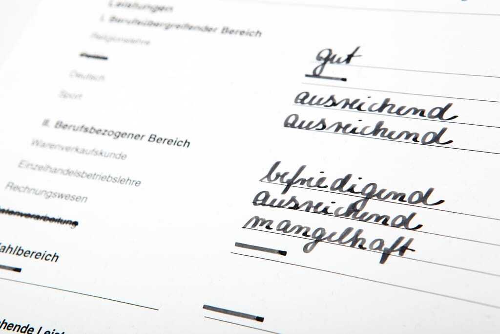 Zeugnis Berufsschule, schlechte Noten.
