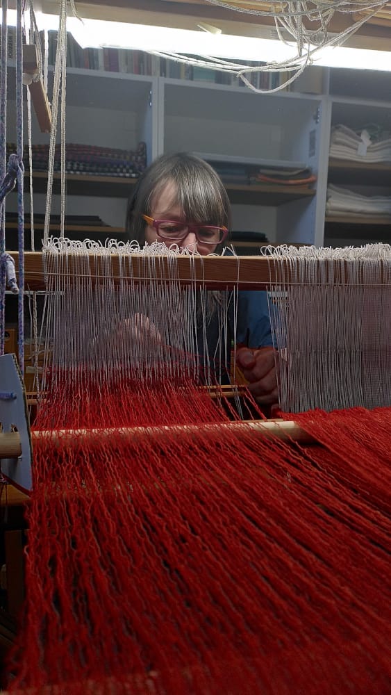 In der Werkstatt der Handweberin herrscht Ruhe und Konzentration