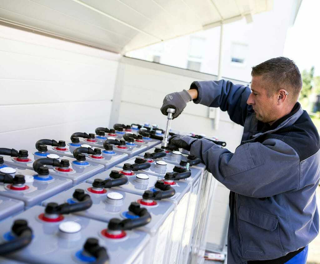 Installation eines Blei-Gel-Speichers. - © Foto: BSW-Solar