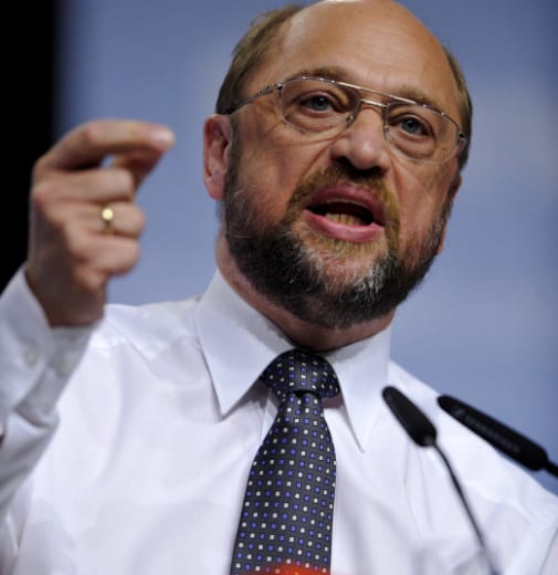 Die SPD hat den überzeugten Europäer mit rheinischem Akzent – der Aachener Schulz spricht "Öcher Platt" – mit überwältigender Mehrheit erneut zum Spitzenkandidaten für die Europawahl nominiert. Der 53-jährige Schulz, der "Europa nach links zu verschieben" will, soll nach den Vorstellungen seiner Partei Nachfolger des Sozialdemokraten Günter Verheugen in der Brüsseler EU-Kommission werden. Dies trifft allerdings auf den hartnäckigen Widerstand der Union und Bundeskanzlerin Angela Merkel (CDU).