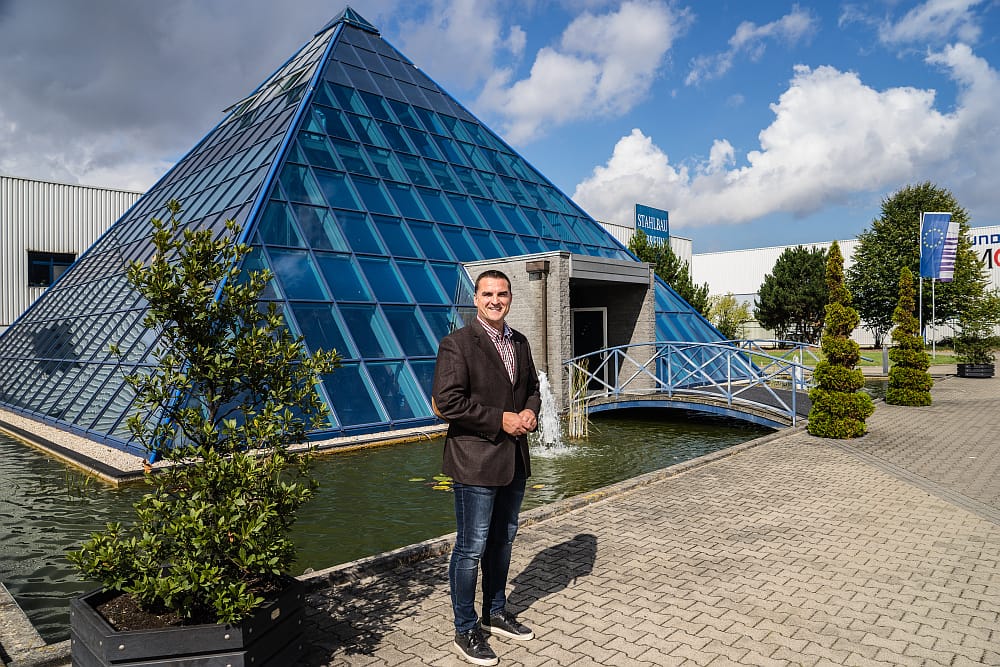 Wie eine überdimensionale Visitenkarte ragt die Pyramide der Stahlbau Brehna GmbH direkt neben der A 9 in den Himmel. Die Botschaft des außergewöhnlichen Verwaltungsgebäudes nordöstlich von Halle: „Wir bauen Pyramiden auch außerhalb der Wüste.“ Um bei dieser Mission noch schlagkräftiger zu sein, hat Firmenchef Matthias Gabler ein Joint Venture in China gegründet. Von Kunming aus realisiert das Gemeinschaftsunternehmen „Future in Steel“ Aufträge in Asien und Afrika.