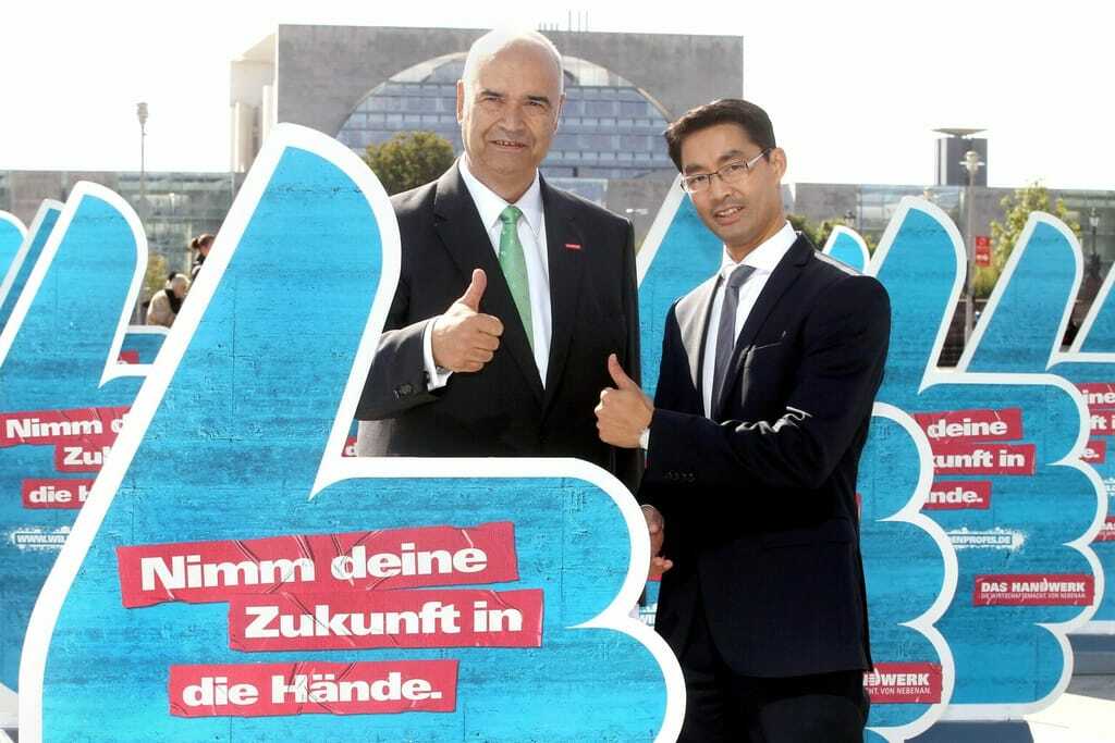 Mit einem gemeinsamen Besuch der Ausstellung gaben Bundeswirtschaftsminister Philipp Rösler (FDP) und ZDH-Präsident Otto Kentzler den Startschuss für den Tag des Handwerks, der dieses Jahr zum zweiten Mal stattfindet. Als "großartig" bezeichnete Rösler die Idee, auf dem Vorplatz des Hauptbahnhofes mit aufgestellten Papp-Händen, die Passanten auf die mehr als hundert Berufe im Handwerk aufmerksam zu machen.