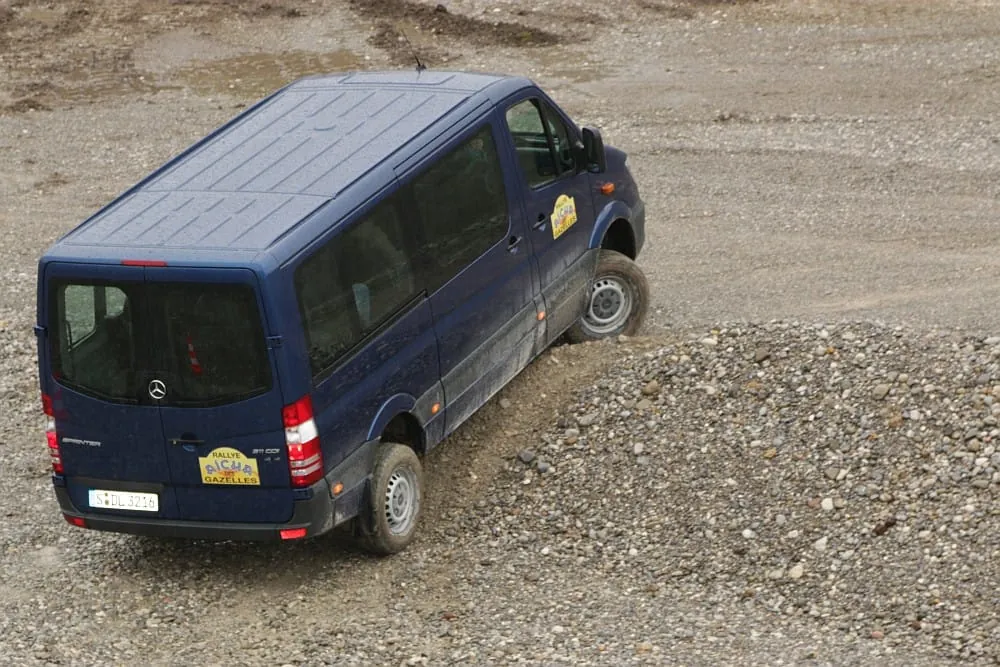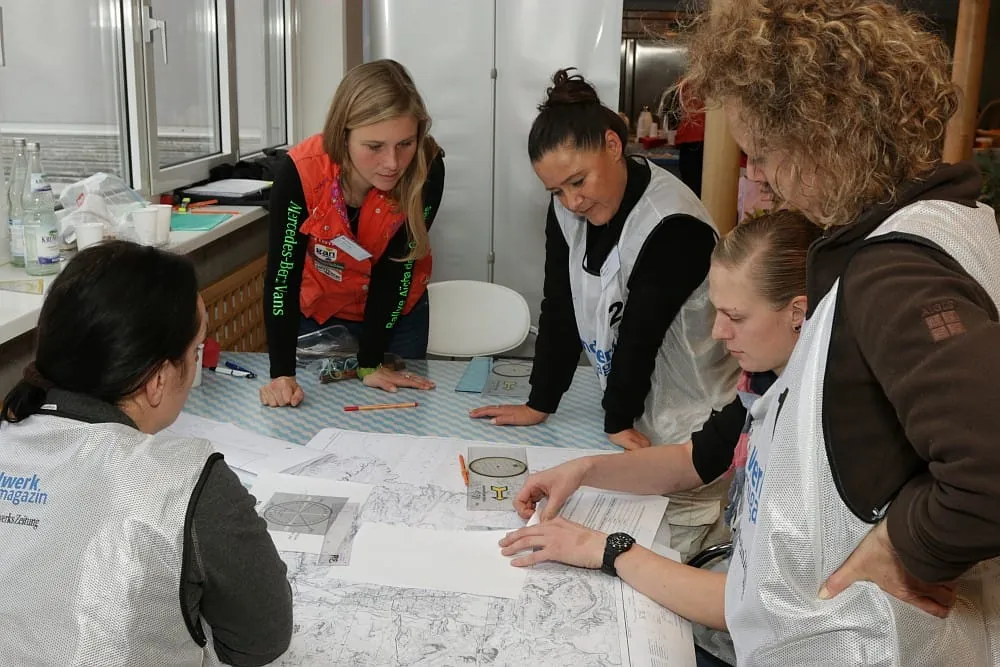 Während des Trainings mussten die Handwerkerinnen unter anderem in der Kiesgrube Dachser in Germaringen fahrerisches Können und blindes Vertrauen in die Copilotin unter Beweis stellen. Außerdem wurden die Fremdsprachen- und Navigationskenntnisse sowie technische Fertigkeiten am Fahrzeug geprüft.