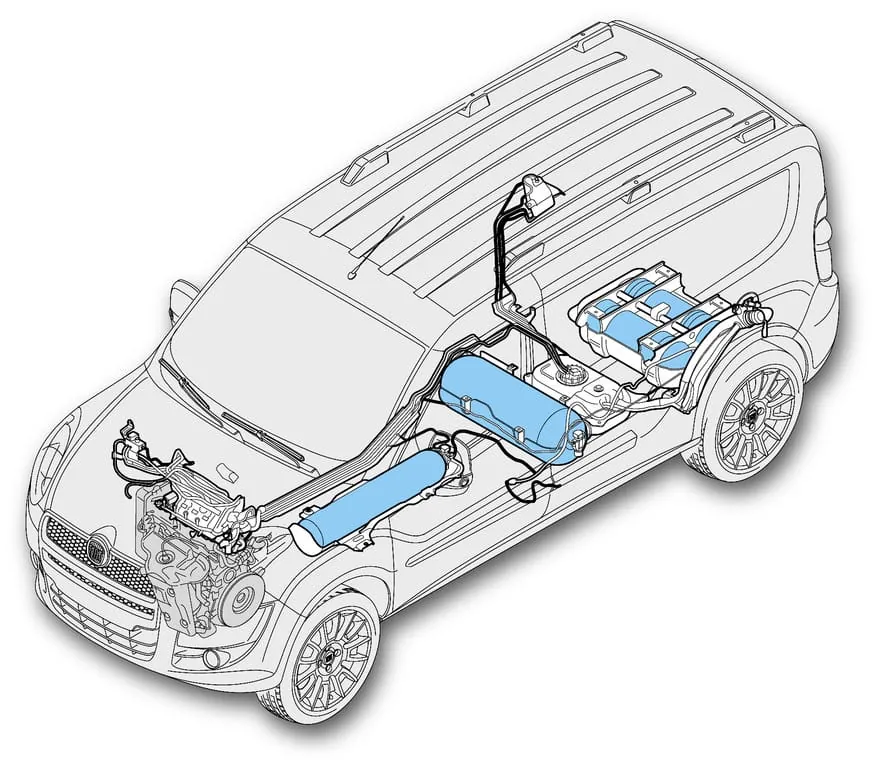 Äußerlich unterscheidet sich der Doblo Natural Power nicht von seinen Diesel-Kollegen: Die Tanks für 14 Kilo Erdgas (CNG) verschwinden im Unterboden, ohne sowohl Laderaum als auch Bodenfreiheit einzuschränken. Der Aufpreis für den 120 PS starken Erdgas-Motor zu einem vergleichbaren Dieselmodell liegt netto bei 2.400 Euro.