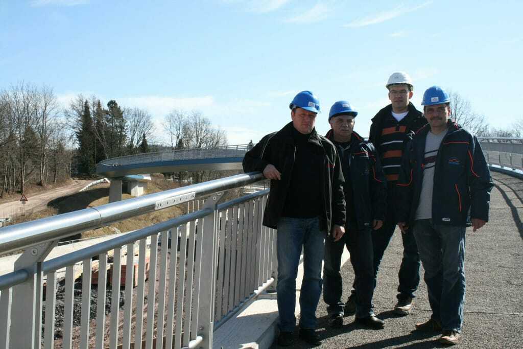 Stolz können aber auch Dirk Berger, Geschäftsführer der Bau Berger GmbH aus Niederwiesa und sein Team sein. Sie haben sämtliche Ingenieurbau- und Stahlbetonarbeiten ausgeführt. „Diese Brücke war schon eine Herausforderung. Um sie nicht zu steil zu bauen und Schwingungen abzufangen, mussten wir eine Art Serpentine umsetzen, eine S-förmige Welle. Das stellt ganz besondere Anforderungen, auch an uns erfahrene Bauleute.“