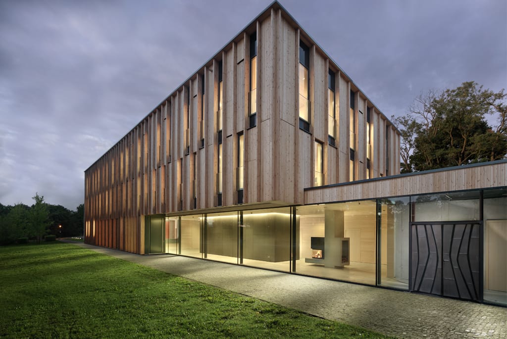 Der dreigeschossige Neubau in der Altstadt von Ravensburg beherbert eine private Kunstsammlung. Besonderes Lob zollt die Jury der Materialauswahl für Gebäudehülle und Gewölbedach. Hierfür wurden Altziegel verwendet, die aus dem Abbruch eines Klosters in der Nähe der belgischen Grenze stammen. Durch den Einsatz einer thermisch optimierten Fassadenkonstruktion konnte der Neubau im zertifizierten Passivhausstandard realisiert werden.