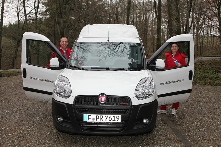 Das Team der Deutschen Handwerks Zeitung war mit e inem Doblò Cargo XL bei der Trophy unterwegs. „Als Fahrzeug für die Service-Monteure könnte ich mir das Auto gut vorstellen. Als Werkstattwagen sollte es dann aber schon der Ducato se in“, sagte Benjam in Schöck, der das Steuer am zweiten Tag se iner Frau überlassen hatte.