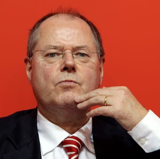 Steinbrück: Sorgen ja, aber wir müssen nicht hysterisch werden. An alle Euroskeptiker: Ohne den Euro geht es nicht. Was würde denn passieren, sollte der Euro abgeschafft werden? In Deutschland würde die D-Mark wieder eingeführt, sie würde deutlich aufgewertet, unsere Exporte, von denen wir leben, würden deutlich teurer. Folglich würden deutsche Produkte im Ausland weniger nachgefragt. Das fiele auf viele Branchen in Deutschland negativ zurück, nicht nur auf die Exportindustrie. Deutschland muss deswegen ein massives Interesse daran haben, dass es Europa und dem Euro gut geht. Auch wenn die Schuldenkrise der Staaten den Euro noch zusätzlich unter Druck setzt.