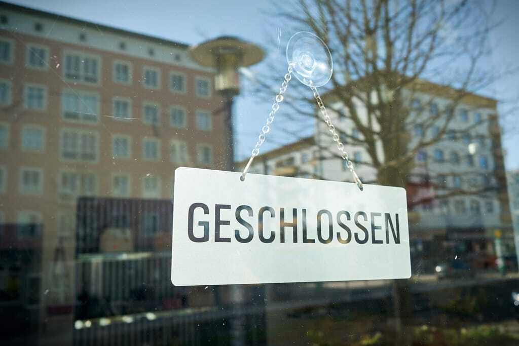 Schild mit der Aufschrift "Geschlossen" am Schaufenster eines Geschäfts.