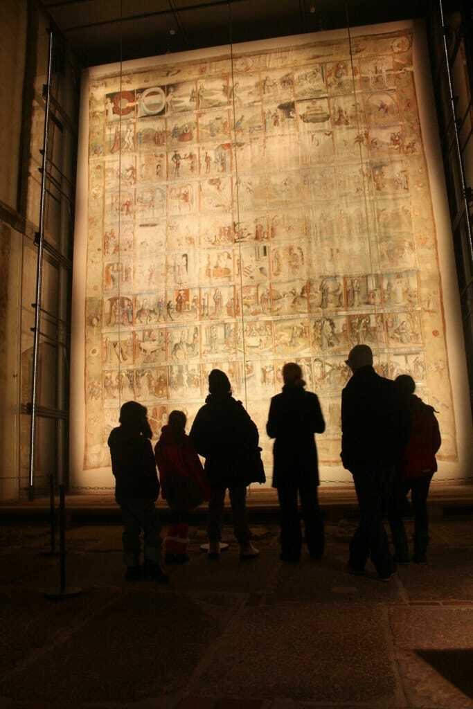 Aber auch das mit 4,30 Meter mal 3,40 Meter große "Kleine Zittauer Fastentuch", dass heute im Kulturhistorischen Museum im ehemaligen Franziskanerkloster ausgestellt wird, ist mit seiner monumentalen Kreuzigungsszene umrahmt von mehr als 40 Symbolen der Passion eine einzigartige Kostbarkeit. Weltweit gibt es von diesem Arma-Christi-Typus nur noch sieben Exemplare. In Deutschland ist es das Einzige seiner Art. Geschaffen von einem unbekannten Maler 1573, hat es dazu die Besonderheit, dass eine evangelische Gemeinde dieses 56 Quadratmeter große Tuch in Auftrag gab, was nach Martin Luthers abschätzigem Urteil von 1526 zu Fastentüchern als "päpstlichen Gaukelwerk" schon an ein Wunder in Sachsen als ein Kernland der Reformation grenzte. "Jährlich kommen an die 40 000 Besucher nach Zittau, nur weil sie die beiden Fastentücher sehen wollen und der Besuch in Verbindung mit einem Kombiticket für Familien (14,- Euro) lohnt sich auch jenseits der besinnlichen Buß- und Fastenzeit", wirbt Frau Windisch.