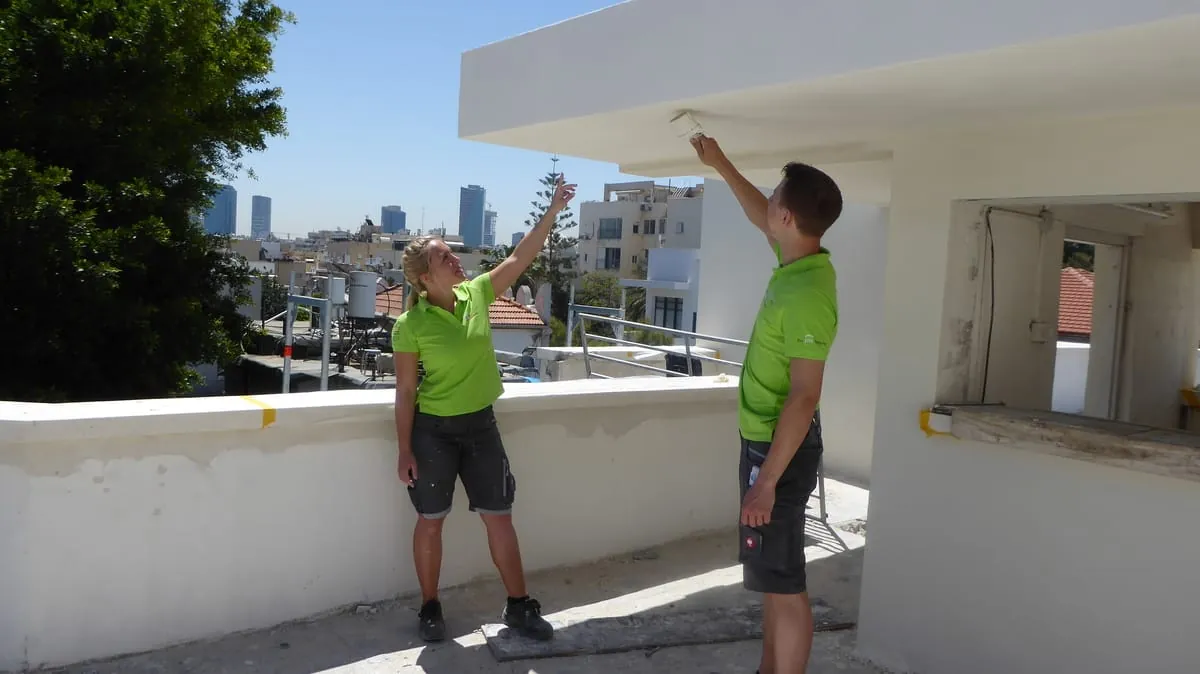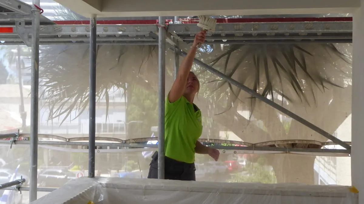Musik übertönt das Streichen der Bürsten. Acht junge Handwerker aus Deutschland stehen auf einem Gerüst in Tel Aviv und arbeiten Farbe in die Außenwand ein. "Weil es die letzte Fassade ist, machen wir sie mit Musik", sagt Ausbildungsmeisterin Annika Hillegeist. Es sind die finalen Handgriffe für die 26-jährige Maler- und Lackierermeisterin aus Dresden und ihr Team bei der Sanierung des Max-Liebling-Hauses .