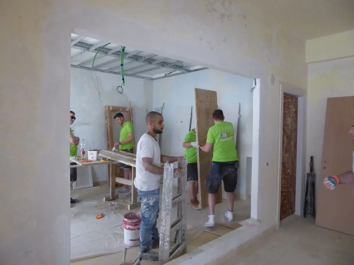 Die angehenden Stuckateure führten eine Putzertüchtigung durch und trugen den aus Deutschland importierten Feinputz auf die Fassade auf. Unter Anleitung der Deutschen arbeiteten in Spitzenzeiten bis zu acht Israelis auf der Baustelle mit. "Für die Jugendlichen ist das eine Erfahrung, die sie nicht vergessen werden", sagt Stuckateur- und Ausbildungsmeister Jochen Drescher.