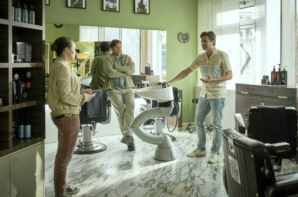 Baumann ist das natürlich extrem unangenehm – die Kunden im Salon fangen an zu tuscheln und seine Chefin sieht es überhaupt nicht gern, dass die Ermittler auf Hausbesuch kommen. Für den Friseur, der schon bald um seine Festanstellung bangen muss, kommt es allerdings noch dicker: Auch seine Frau und sein Kind wenden sich zunehmend von ihm ab, als die Vorwürfe bekannt werden und die Polizei ihn zu einem freiwilligen DNA-Test drängt. Und das, obwohl Baumann die Tat vehement bestreitet und bis in die Schlussminuten des Krimis offenbleibt, ob er die Wahrheit sagt.