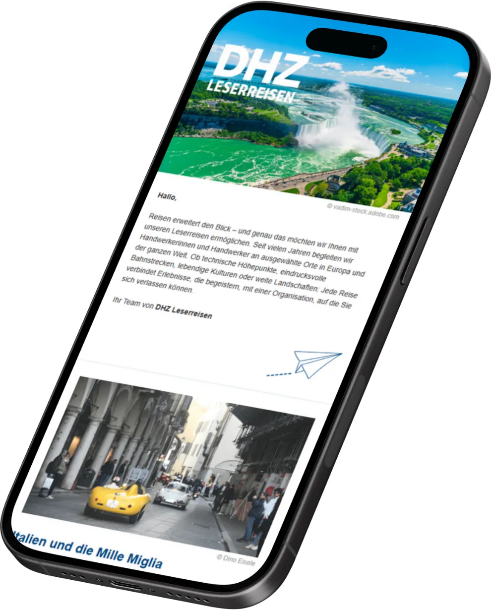 Dann melden Sie sich zu unserem kostenlosen DHZ Leserreisen-Newsletter an und erhalten Sie monatlich unsere aktuellen Reiseangebote direkt in Ihr E-Mail-Postfach.