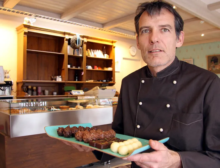 Um in Übung zu kommen für seine Selbständigkeit, hat der 52-Jährige zwischendrin bei einem alten Meister in München gearbeitet. Büroarbeiten, Verkauf, Produktion – alles Tätigkeiten, die wieder antrainiert werden mussten. Aber mit dem Intermezzo hat der Konditor auch noch Glück. Der Münchner Pralinen-Spezialist hatte damals seinen Ruhestand vor Augen und überlässt dem Kollegen seine Rezepte.