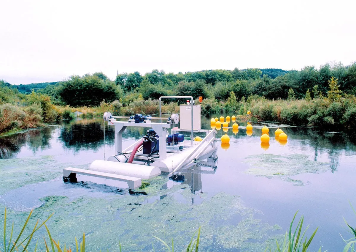 Angesaugt und abgegeben: Der Schlammräumer von Klawa sorgt dafür, dass Klärschlamm nicht mehr aus den geleerten Teichen ausgebaggert werden muss.