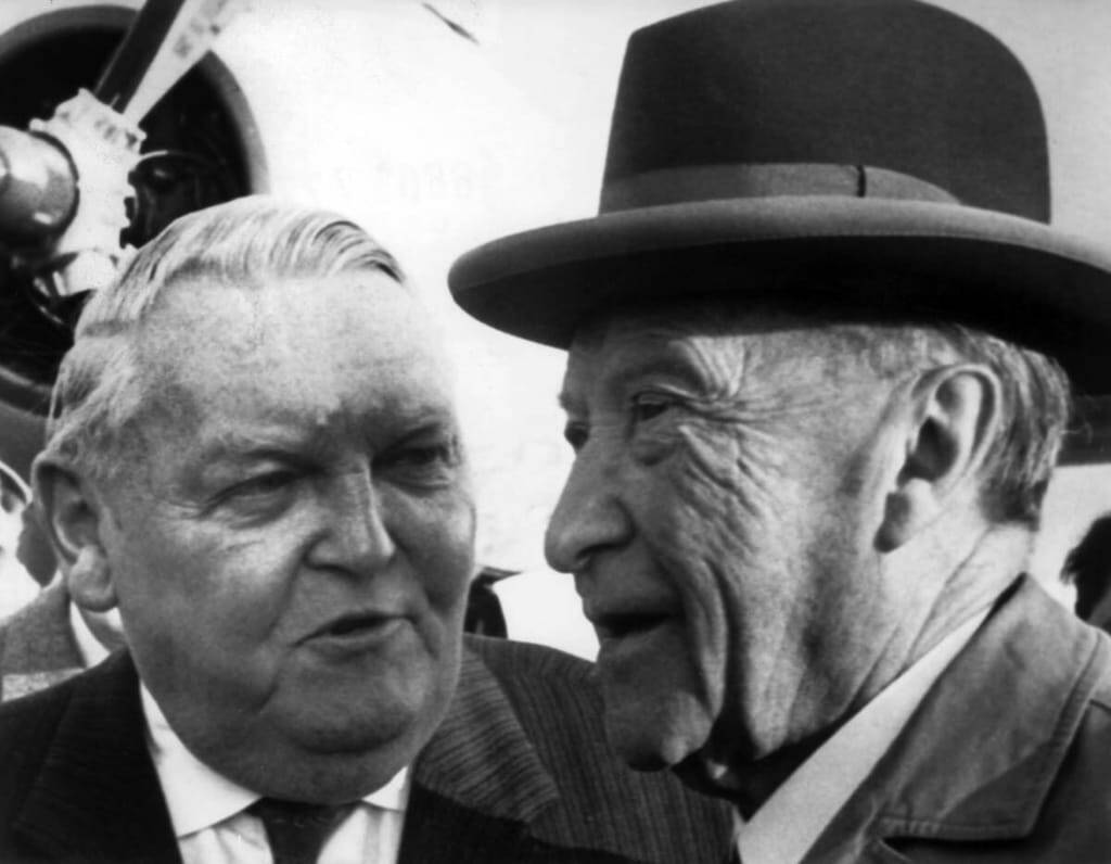 Die beiden ersten CDU-Vorsitzenden und Bundeskanzler Erhard und Adenauer - © picture alliance / dpa / dpa