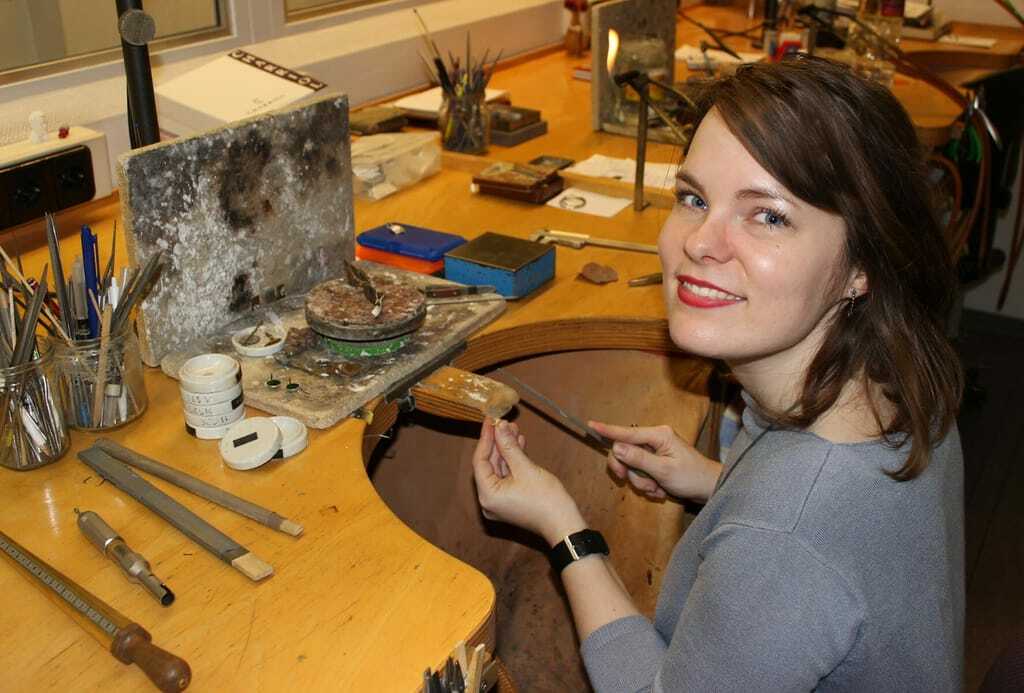 Dabei plant sie die Neugestaltung der Schmuckobjekte am PC in enger Abstimmung mit dem Kunden. "Nach einigen handwerklichen Griffen erstrahlen alte Erinnerungsstücke dann in neuem Glanz und erfreuen auch in Zukunft ihre Besitzer", sagt die Goldschmiedin.