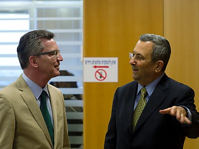 De Maizière sagte weiter, er habe mit Barak auch über den Iran gesprochen. "Mit besonderer Sorge" sehe man dabei die unveränderten Bestrebungen Teherans, sich nuklear zu bewaffnen. Barak hatte sich in den letzten Wochen skeptisch geäußert, dass der Iran einen Atomangriff auf Israel starten würde. Allerdings wurde diese öffentliche Einschätzung von Beobachtern auch dahingehend gedeutet, dass Barak seine Landsleute auf eine eigene Atombombe einstimmen wollte. Bislang bestreitet Israel den Besitz von Atomwaffen.