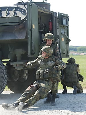 Der Ruf des Sanitätsdienstes habe sich deutlich verbessert, lobte de Maizière: "Wenn man das heute mit meiner eigenen Bundeswehrzeit vergleicht, ist das schon ein großer Unterschied. Das ist eine tolle Leistung." Der Sanitätsdienst habe innerhalb der Bundeswehr eine große Bedeutung, weil er gut und eng mit den anderen Teilstreitkräften zusammenarbeite. Heute müsse ein Sanitäter auch Infanterist sein, und ein Infanterist müsse auch die Erstversorgung von Verwundeten vornehmen können, sagte der Minister. "Das machen wir nicht aus Not, sondern, weil es vor Ort erforderlich ist." Das zeichne eine moderne Bundeswehr aus.