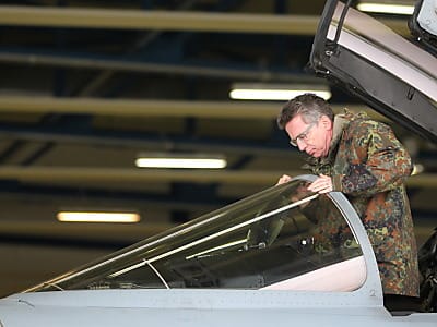 Verteidigungsminister Thomas de Maizière (CDU) nimmt gern Platz in der Pilotenkanzel des Eurofighters und lässt sich das Instrumentenpult des Jagdfliegers erklären. Ein Mitflug, wie er bei seinem Vorgänger Karl-Theodor zu Guttenberg (CSU) auf der Wunschliste stand, kommt für de Maizière nicht infrage. Er sei kein Soldat, er sei Oberbefehlshaber, sagt der 57-Jährige.