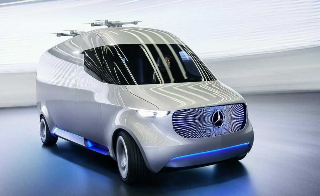 Auffällig beim Vision Van sind vor allem die beiden Drohnen auf dem Dach, die mit einer Nutzlast von jeweils zwei Kilogramm vom Lieferwagen aus Pakete bis zu zehn Kilometer weit zum Adressaten bringen können. Das Fahrzeug selbst wird von einem 75 kW starken Elektromotor angetrieben, der eine Reichweite von 270 Kilometer ermöglicht.