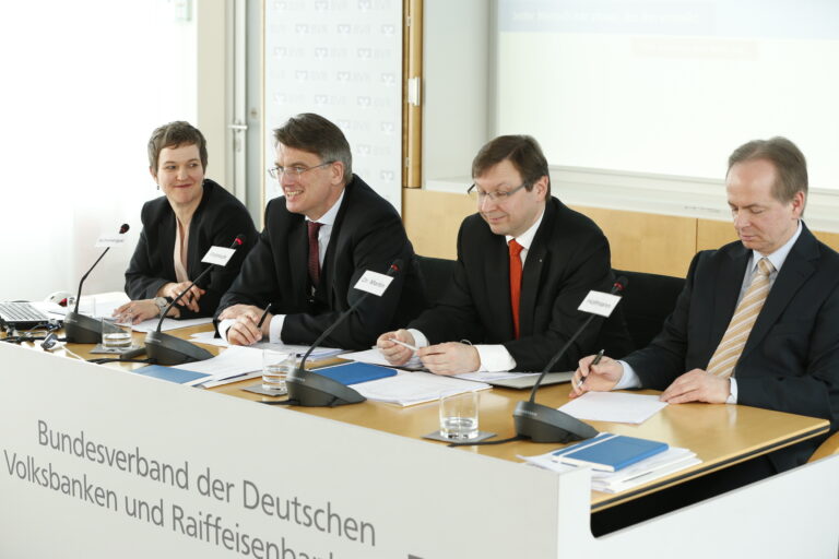 Um auch künftig wettbewerbsfähig zu sein, wollen die Genossenschaftsbanken die Internetpräsenz weiter ausbauen und das Filialnetz geringfügig straffen. Von der Politik erwartet der Verband Augenmaß bei der Bankenregulierung. Fröhlich warnte davor, dass bewährte Universalbankensystem in ein Trennbankensystem umzubauen. Die Kunden erinnerte der Vorstand daran, die eigenen Buchhaltungssysteme schon jetzt auf das ab Februar 2014 national und international geltende SEPA-Format für Überweisungen und Lastschriften umzustellen.