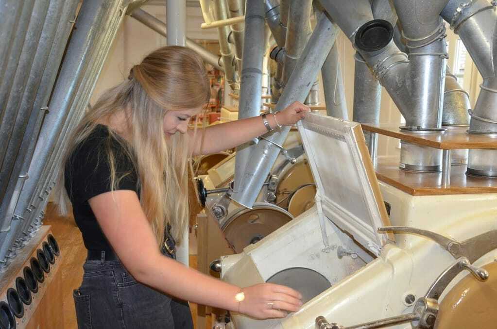 Luisa Winkler dagegen kennt den Beruf aus Kindertagen in- und auswendig. Als sie nach ihrem Abitur kein passendes Studienfach fand, entschied sie sich spontan, in fünfter Generation in die väterliche Mühle einzusteigen. "Ich hätte ein schlechtes Gewissen gehabt, wenn so etwas verloren geht", sagt sie. Sie bereut es nicht. Von früh bis spät wetzt sie durch die engen Stockwerke, kontrolliert und testet, was an den Walzenstühlen passiert, füllt ab, mischt und macht überhaupt alles, was der Vater ihr zeigt.