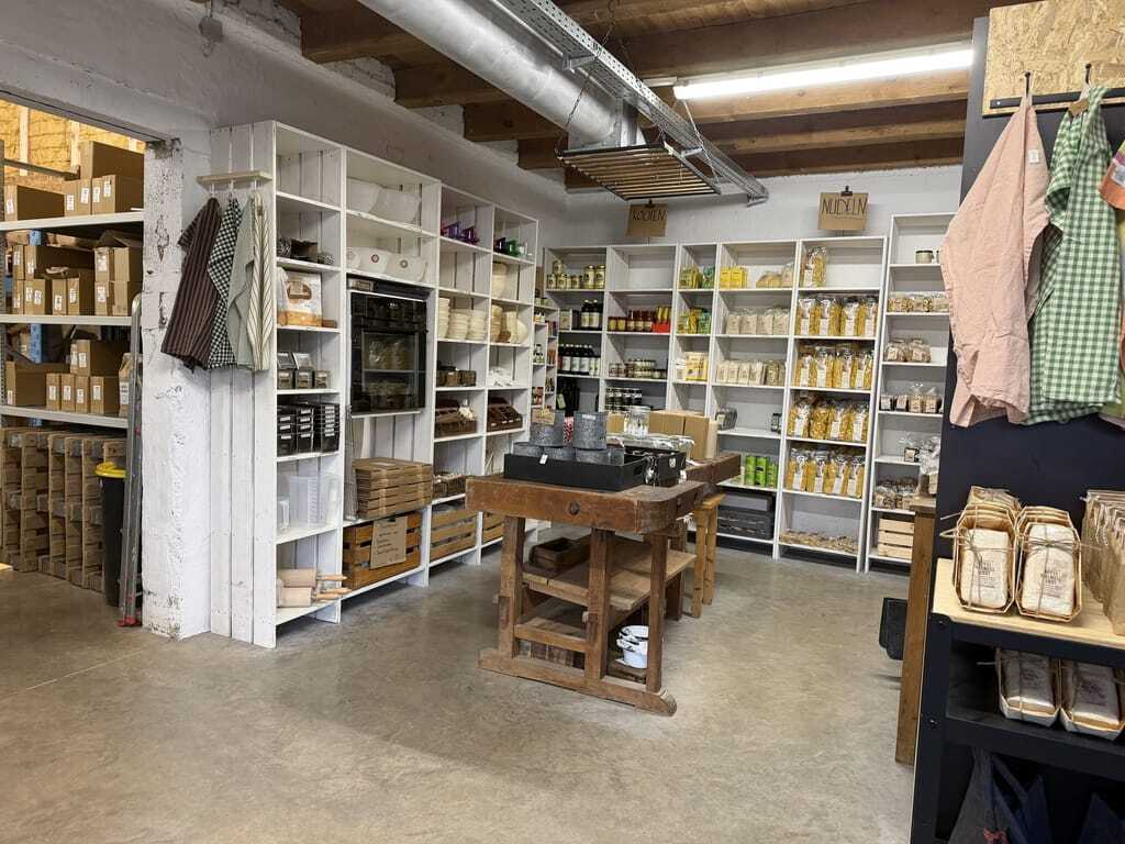 Der neue Laden ist im ehemaligen Versandraum untergebracht. Kleiner, etwas improvisiert, aber es funktioniert. An der Tür hängt ein Pappschild: "Kräftig ziehen." Zinßer kennt viele Kunden beim Namen. Seine Tochter steht an der Kasse; eigentlich studiert sie Design. In den Regalen finden sich Mehl, Nudeln, Backformen und Müsli. An einer Tafel stehen die Termine für die Backkurse.