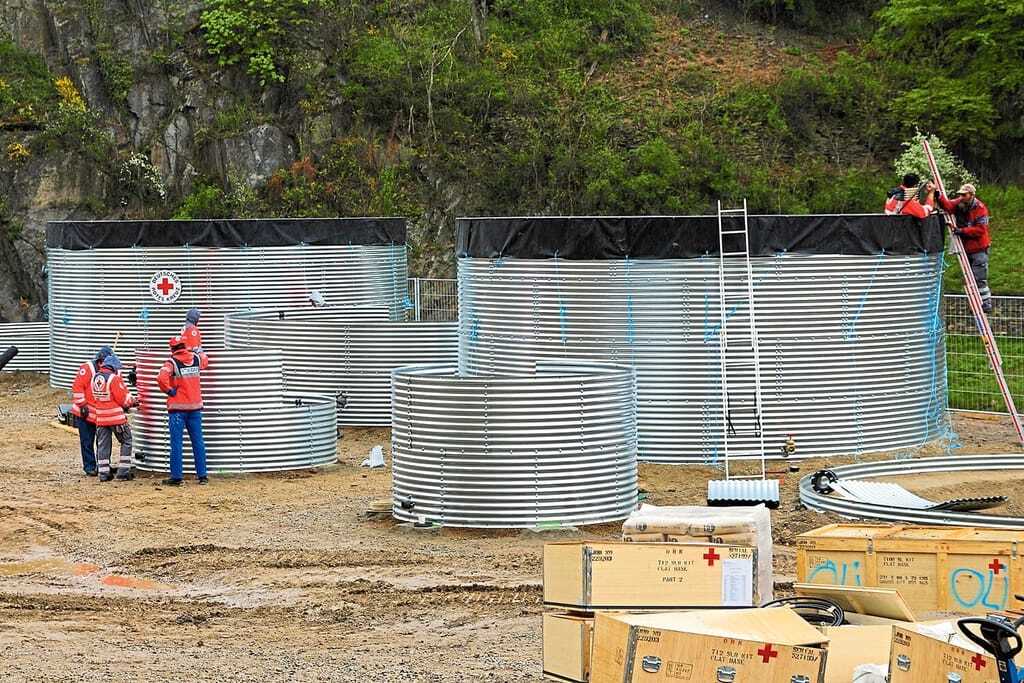Die Fähigkeiten erfahrener Fachkräfte aus dem Handwerk sind bis heute im Katastrophengebiet gefragt. Kurz nach der Flut ging es unter anderem darum, die Trinkwasseraufbereitung zu sichern. Das Besondere an den Anlagen, die das DRK dort aufgebaut hat, ist ihre leichte und modulare Bauweise. "Dadurch sind sie auch in unwägbarem Gelände gut zu transportieren und können ohne schweres Gerät aufgebaut werden", erklärt Stefan Kullmann.