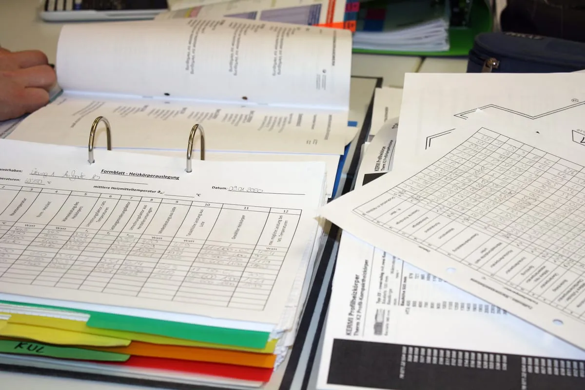 Dennoch sitzen Jonas Haase und seine Mitschüler mit rauchenden Köpfen über Papier und fertigen mit Bleistiften technische Zeichnungen an. "Das ist schon wichtig, dass die das auch noch können", sagt der Kursleiter des Meisterkurses, Rainer Klein. "Aber EDV wird schon immer wichtiger. Ohne die Computer-Programme mit 3D-Visualisierung und Ähnlichem geht es nicht mehr." Digitale Technik hilft den Handwerkern heute, den Überblick zu behalten, Rohr- und Elektroleitungen zu planen und das bereits genannte, große Ganze nicht aus den Augen zu verlieren. Die Schüler in Kleins Kurs zeichnen gerade eine neue Heizungsanlage. Eine typische Aufgabe für SHK-Meister: Der Austausch einer alten Anlage durch eine neue Moderne. "Dafür müssen die Schüler natürlich auch die alte Technik beherrschen.", sagt Klein.