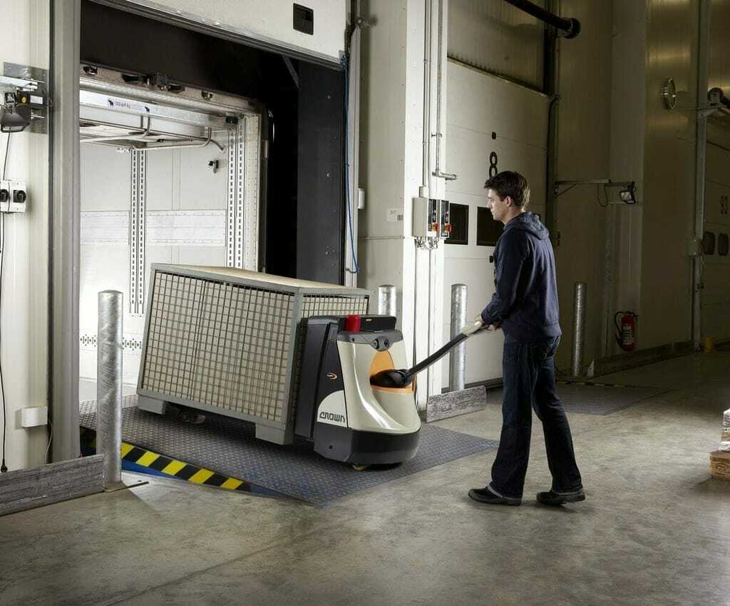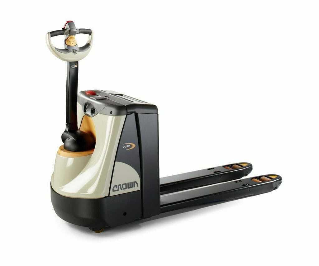 Mit der WP3000-Serie bietet Hersteller Crown eine Gabelhubwagen-Familie an, die besonders robust erscheint: Fahrgestell, Griff und Verkleidungen sind aus Stahl und Metallgussteilen gefertigt. Für den Antrieb sorgt ein AC-Fahrmotor, der seine Leistung auch bei fortschreitender Batterieentladung beibehalten soll. Statt wartungsbedürftigen Scheibenbremsen sind die verschiedenen Modelle mit einem selbstentwickelten Bremssystem ausgestattet. Es soll sanft und gleichmäßig verzögern. Die Bremsung findet im Motor statt, womit Energie in die Batterie zurückfließt.
