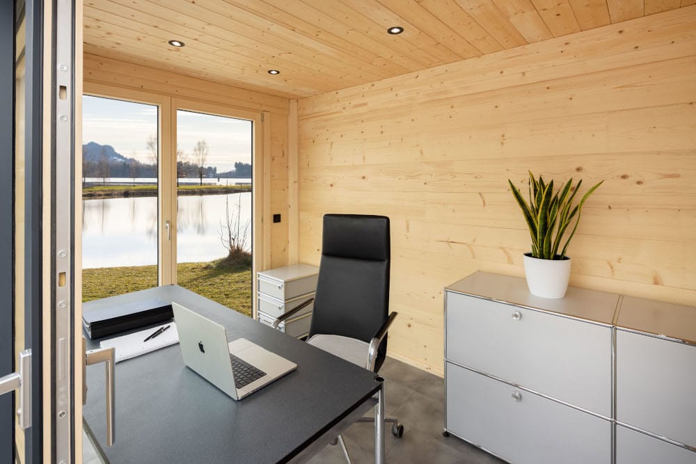 Durch die Corona-Pandemie ist die Nachfrage nach neuen Arbeitsmodellen wie diesen aus der Nische gekommen. Um diese an die heutige Arbeitswelt anzupassen und das Homeoffice langfristig für mehr Menschen attraktiv zu halten, hat sich die Zimmerei von Josef Hummel – Blockhaus Hummel aus Ottobeuren im Allgäu – etwas einfallen lassen. Sie bietet ein Homeoffice to go an, ein mobiles Tiny-Office. Man kann es mieten oder kaufen. Arbeitnehmer können so ihr Büro vom Alltag abgrenzen und dennoch zuhause verfügbar sein. Arbeitgeber können mit einem Arbeitsplatz auch gleich ein komplett ausgestattetes Homeoffice anbieten und dabei an Attraktivität gewinnen.