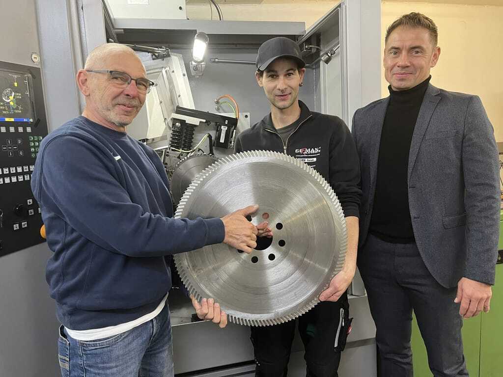 Letztendlich fand Geiger auch dank eines glücklichen Zufalls seinen "Traumnachfolger", den 36-jährigen Philipp Bauer. Dessen Freundin brachte kurz vor Weihnachten 2022 ein paar Messer zum Schleifen in Geigers Werkstatt. "Wir kamen ins reden und sie erzählte mir, dass ihr Freund sich gerne selbstständig machen würde", erinnert sich der Werkzeugschleifer. Man lernte sich kennen und Philipp Bauer, ein gebürtiger Neumarkter, arbeitete erst mal 14 Tage zur Probe mit. "Das Schleifen hat mir wirklich gut gefallen", erzählt er. "Allerdings hatte ich schon ziemlichen Bammel vor den großen CNC-Schleifmaschinen. Ich dachte wirklich, das kriege ich nie in meinen Kopf rein." Dank der guten Einarbeitung von Reimund Geiger klappt auch das Schleifen großer Sägeblätter inzwischen wie geschmiert, so viel sei vorweggenommen. Doch bis es letztendlich zur Betriebsübergabe kam, zogen noch einmal gut eineinhalb Jahre ins Land. Und das, obwohl Betriebsberater Mario Göhring beiden Parteien auch diesmal zur Seite stand. Vor allem die Banken, sagt Philipp Bauer, hätten für ihre Prüfungen relativ lange gebraucht.