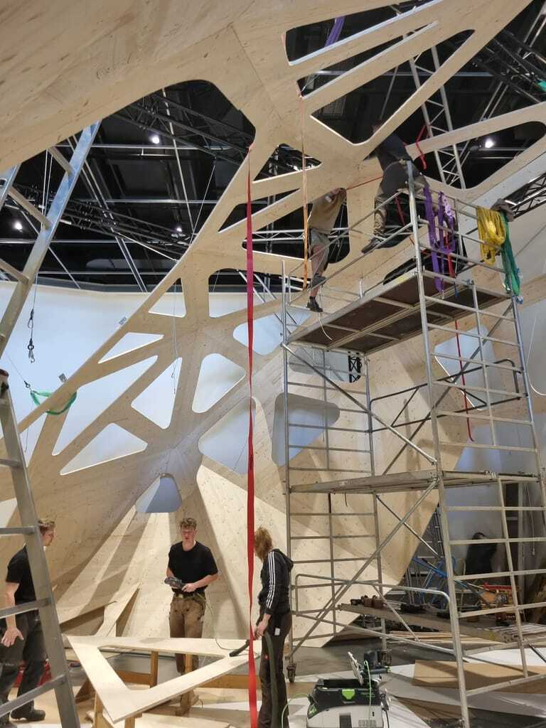 Der Aufbau in Regensburg gestaltete sich dementsprechend spannend. Hierbeck war ständig vor Ort, mit ihm einige seiner Mitarbeiter und auch seine zwei Töchter. Teamarbeit und Präzision waren gefragt. Die Ausstellung eröffnete am 10. Mai. Etwa fünf Wochen vorher begannen die Arbeiten im Haus der Bayerischen Geschichte direkt am Donauufer in der Regensburger Altstadt. Drinnen arbeiteten die Schreiner aus Schöllnach mit Hochdruck. Hierbeck erinnert sich an die Erleichterung, als der Diamant endlich stand: "Während der Montage noch sehr labil und über Stahlseile an Traversen abgehängt und gesichert, trug sich die finale Konstruktion dann wie geplant von selbst."