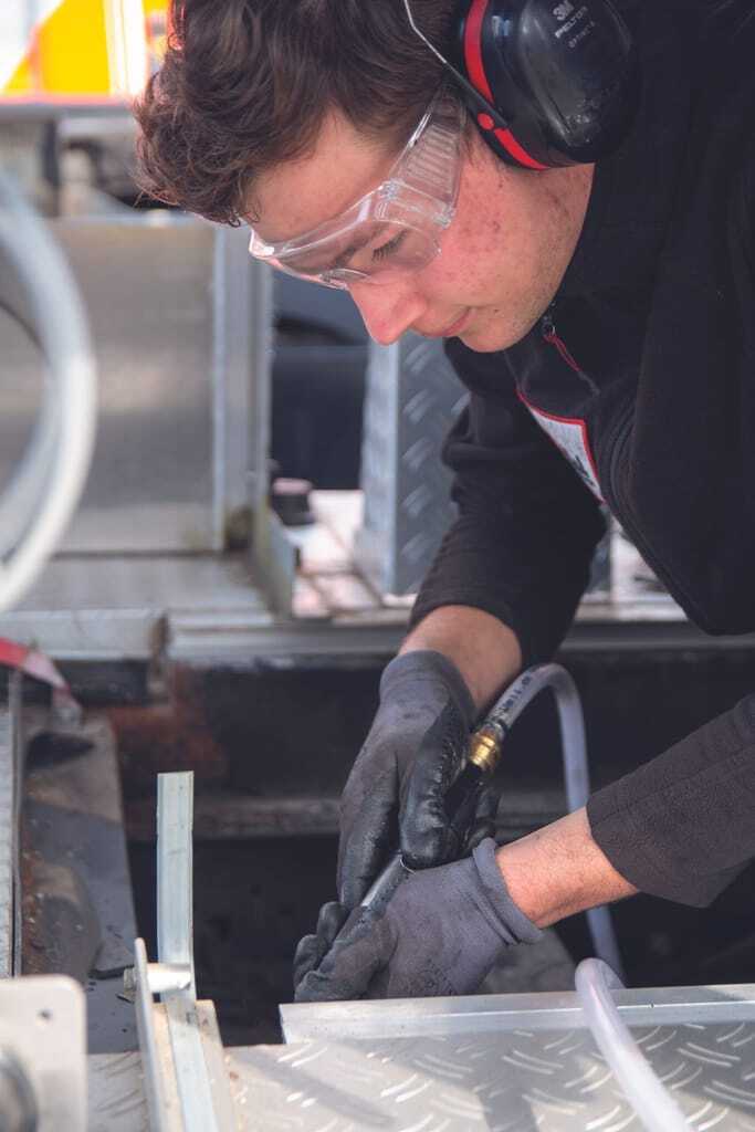 Richard Mierisch ist Auszubildender im dritten Lehrjahr und sagt: "Der große Vorteil hier ist die Abwechslung, einen Tag macht man Wartung, am anderen Karosseriebau. Das ist mir nicht bekannt, dass das in einer anderen Firma so cool ist."