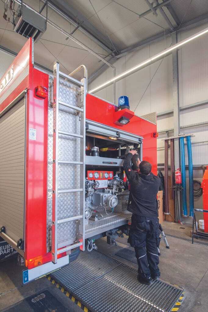 Das inhabergeführte Familienunternehmen entwickelt und baut inzwischen eigene Feuerwehr- und Sondereinsatzfahrzeuge und deckt dabei ein breites Produktspektrum ab – vom Kommandowagen über Einsatzleitwagen bis hin zu Gerätewagen. Die besondere Stärke sind Spezial- und Individuallösungen für die unterschiedlichsten Einsatzbedingungen. Das Motto dabei ist: Wir fangen da an, wo andere aufhören. Diese Lust, besondere Herausforderungen zu meistern und innovative Lösungen anzubieten, ist im ganzen Betrieb spürbar. Dass etwa zwei Drittel der Belegschaft sich ebenfalls in der freiwilligen Feuerwehr engagieren, steigert die Fachkompetenz noch einmal. Auftraggeber sind vor allem Unternehmen der öffentlichen Hand. Die Auftragslage ist solide, weil bundesweit verteilt und durch die öffentlichen Auftraggeber gesichert. So konnte der Betrieb sukzessive ausgebaut werden, von 13 auf 80 Mitarbeiter in den vergangenen sechs Jahren.