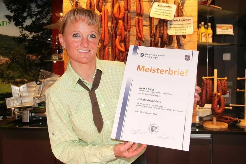 Viele Jahre stand sie hinter der Fleischtheke als Fachverkäuferin und koordiniert nun als Fleischermeisterin die Abläufe bei der Mörsdorfer Landhof Fleischerei GmbH in Bad Blankenburg. Nicole Jäkels Karrierewerg ist ein perfektes Beispiel dafür, dass mit Ehrgeiz, Fleiß und Mut alles möglich ist.