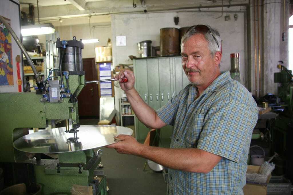Konkurrenz hat die Metalldrückerei Hugo Bräuer kaum, denn per Hand formt fast kein Betrieb mehr das Metall. - © Foto: Jana Tashina Wörrle
