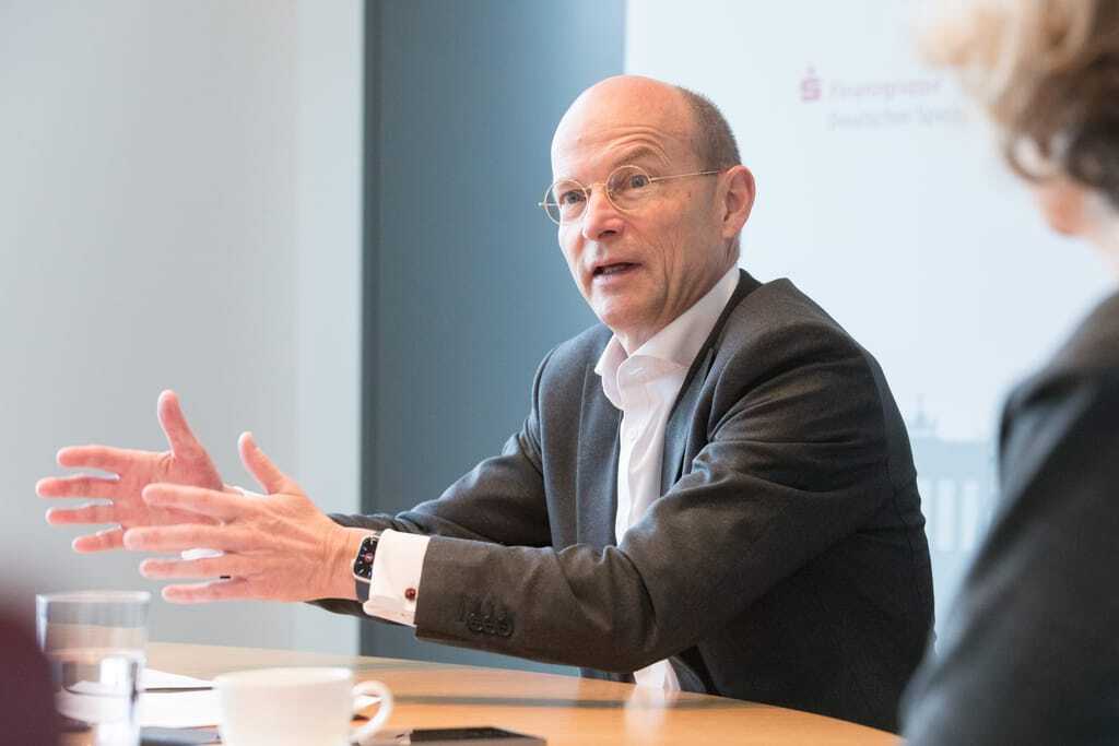 Sparkassenpräsident Reuter beim Interview in Berlin. - © Marc Darchinger
