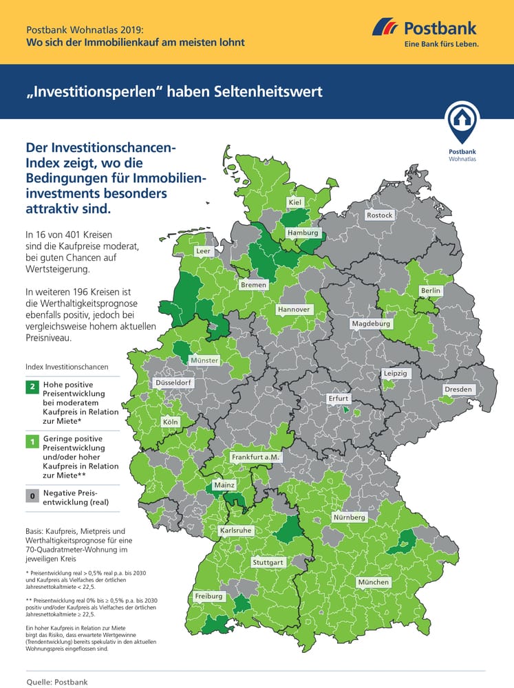 Postbank Wohnatlas 2019 Wo in Deutschland sich der Immobilienkauf lohnt