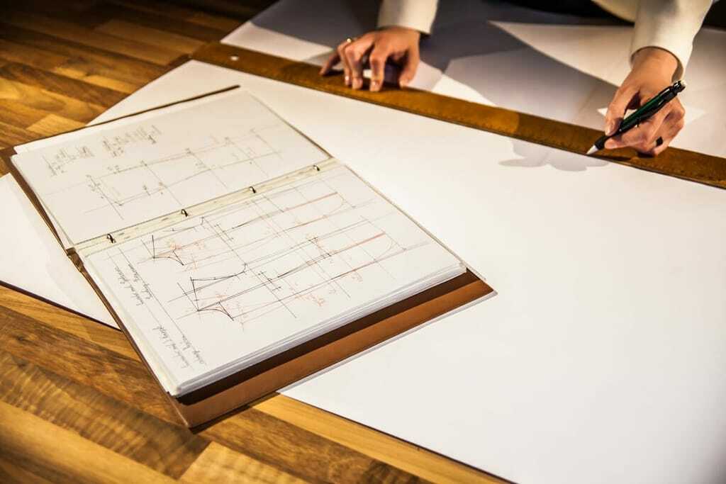 Die Entstehung beginnt mit einem Beratungsgespräch. Dafür nimmt sich die Schneidermeisterin mindestens anderthalb Stunden Zeit, in denen sie versucht, ihre Kunden möglichst gut kennenzulernen. "Sie sind meine Inspiration. Ich orientiere mich an ihrem Typ, ihrer Balance, der Körperform und den Proportionen." Trends beachte sie weniger: "Mal sind längere, mal kürzere Sakkos beliebt. Für meine Kunden ist das aber nicht wichtig." Aus über 1.500 hochwertigen Stoffen aus Italien, Schottland oder England wählt Schönherr gemeinsam mit den Männern das passende Muster aus. Im nächsten Schritt nimmt sie die Maße und zeichnet das erste Schnittmuster. Erst jetzt folgen die aufwendige Arbeit in der Nähstube sowie eine erste Anprobe, in der bereits die Ärmel grob eingeheftet und das Innenfutter eingefügt werden. "Zu sehen, wie der eigene Maßanzug Gestalt annimmt, löst bei vielen einen Aha-Effekt aus." Der schönste Moment sei schließlich, wenn die Herren das fertige Stück anprobierten: "Es bewegt mich, wenn die Männer selbstbewusst vorm Spiegel stehen, ihre Augen glänzen und sie denken ‚Das ist mein Anzug‘". Dann weiß Schönherr: Sie hat wieder jemanden zum Anzugträger gemacht.
