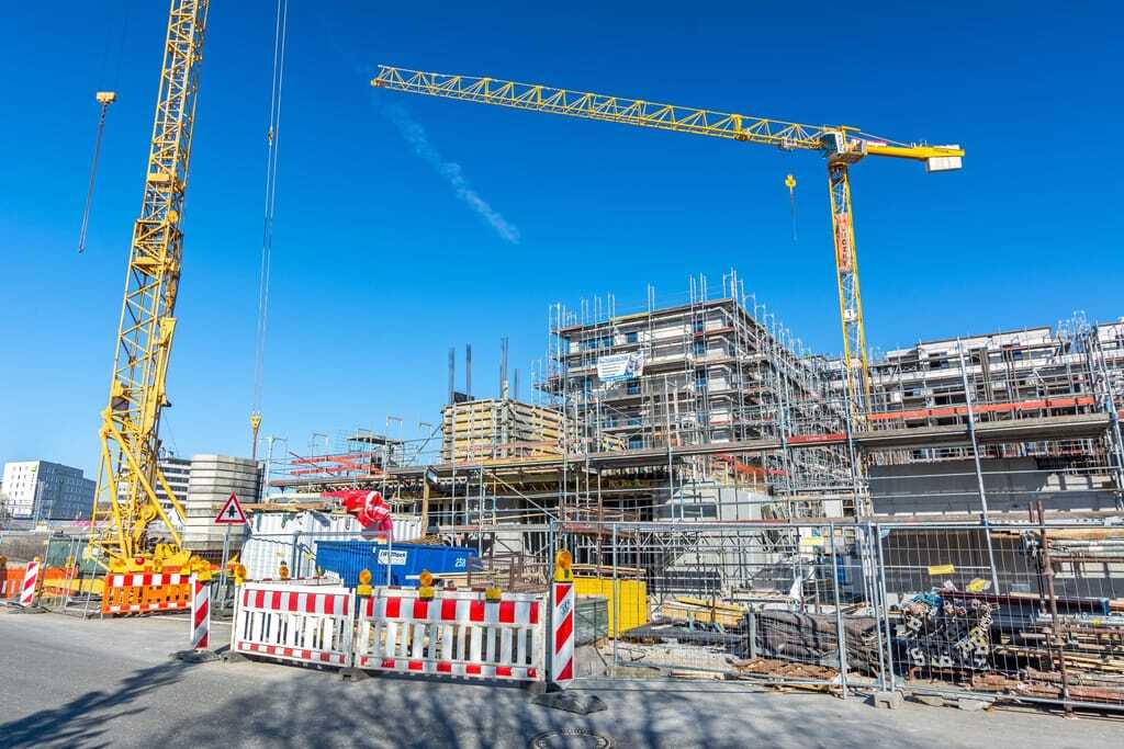 Baustelle mit Kränen in Tübingen.