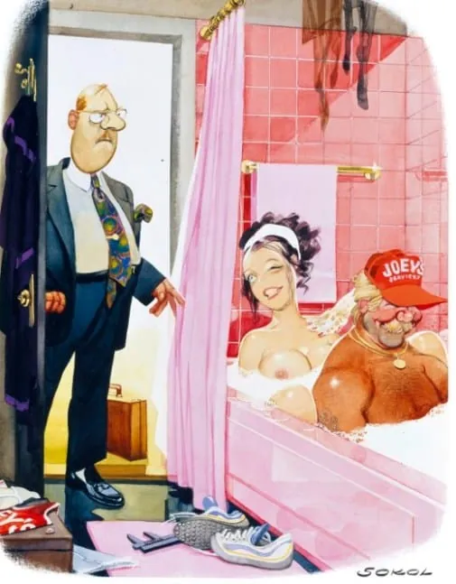 Gegründet im Dezember 1953 – mit Marilyn Monroe auf der ersten Titelseite – entwickelte sich de Playboy sehr rasch zu einem Erfolgsmagazin und besitzt heute Kultstatus. Erich Sokol (1933-2003) lernte Hugh Hefner, den Gründer und Herausgeber während seines Studiums in den USA kennen und bereits 1957 wurden seine ersten Cartoons im Playboy veröffentlicht. Sokol war – mit einer längeren Unterbrechung – bis zu seinem Tod für Playboy tätig und hat mit seinen herausragenden Cartoons das Magazin über viele Jahre wesentlich mitgeprägt.