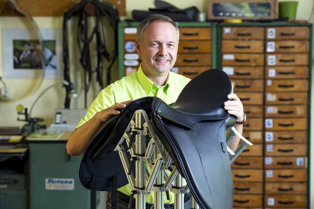 Ein auf Maß gefertigter Sattel dient der Gesunderhaltung von Pferd und Reiter gleichermaßen. "Man könnte unsere Arbeit mit der eines Orthopädieschuhmachers vergleichen. Wer einen deformierten Fuß hat, wird mit einem Schuh von der Stange nicht klarkommen", erklärt Tom Büttner. Aktuell arbeitet er an Satteln für zwei behinderte Reitsportler, die nächsten Sommer bei den Paralympics in Paris antreten wollen. Auch Profireiter mit sehr wertvollen Pferden oder ambitionierte Hobbyreiter vertrauen auf die Expertise von Tom Büttner, in dessen Sattlerei 23 Mitarbeiter und vier Auszubildende beschäftigt sind.