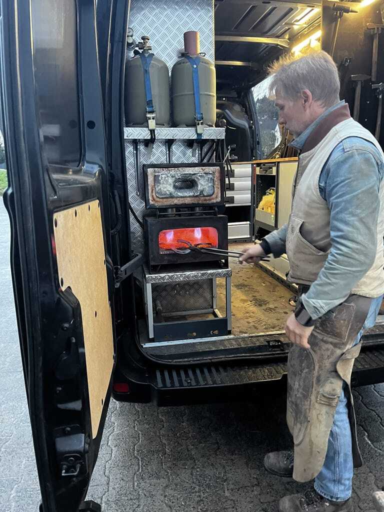 Pferdehöfe sind der typische Arbeitsplatz von Sven Schnese, die er mit seiner mobilen Werkstatt – seinem Transporter – täglich im Umkreis von 50 km um seine Heimat im Vogelsberg, Hessen anfährt. "Früher gab es in jedem Dorf einen Hufschmied, heute muss der Schmied zu den Ställen fahren", erwidert er. Das Innere des Transporters erinnert an eine kleine Werkstatt mit einer Werkbank und verschiedensten Werkzeugen. Sven öffnet die hinteren Türen seines Transporters, holt seine Werkzeuge heraus, schnallt sich einen Magnet mit Hufnägeln um den Arm und legt seine Schürze um, die zum Schutz vor scharfen Werkzeugen dient. Die Vorbereitungen sind getroffen und im nächsten Schritt macht er sich auf den Weg in den Stall.